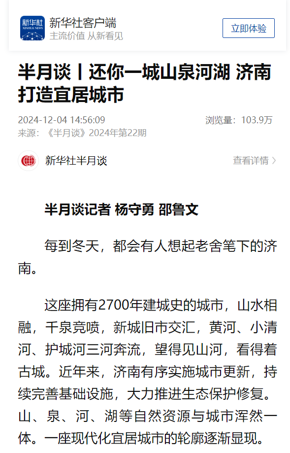 這座擁有2700年建城史的城市,山水相融,千泉競(jìng)噴,新城舊市交匯,黃河、小清河、護(hù)城河三河奔流,望得見(jiàn)山河,看得著古城。近年來(lái),濟(jì)南有序?qū)嵤┏鞘懈拢掷m(xù)完善基礎(chǔ)設(shè)施,大力推進(jìn)生態(tài)保護(hù)修復(fù)。山、泉、河、湖等自然資源與城市渾然一體。一座現(xiàn)代化宜居城市的輪廓逐漸顯現(xiàn)。