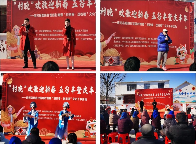 由濟南廣播電視臺文旅體育頻道、濟南市呂劇院、濟南職業(yè)學院、濟南江湖藝社等志愿者聯(lián)合村民共同組織的“村晚”歡歌迎新春 五谷豐登慶豐年——商河縣路陳村首屆村晚暨“迎新春·送祝福”文化演出活動在村委會廣場舉行,演出節(jié)目豐富多彩,既有傳統(tǒng)的戲曲、曲藝表演,也有現(xiàn)代的歌舞節(jié)目,充分展現(xiàn)了鄉(xiāng)村文化的獨特魅力。