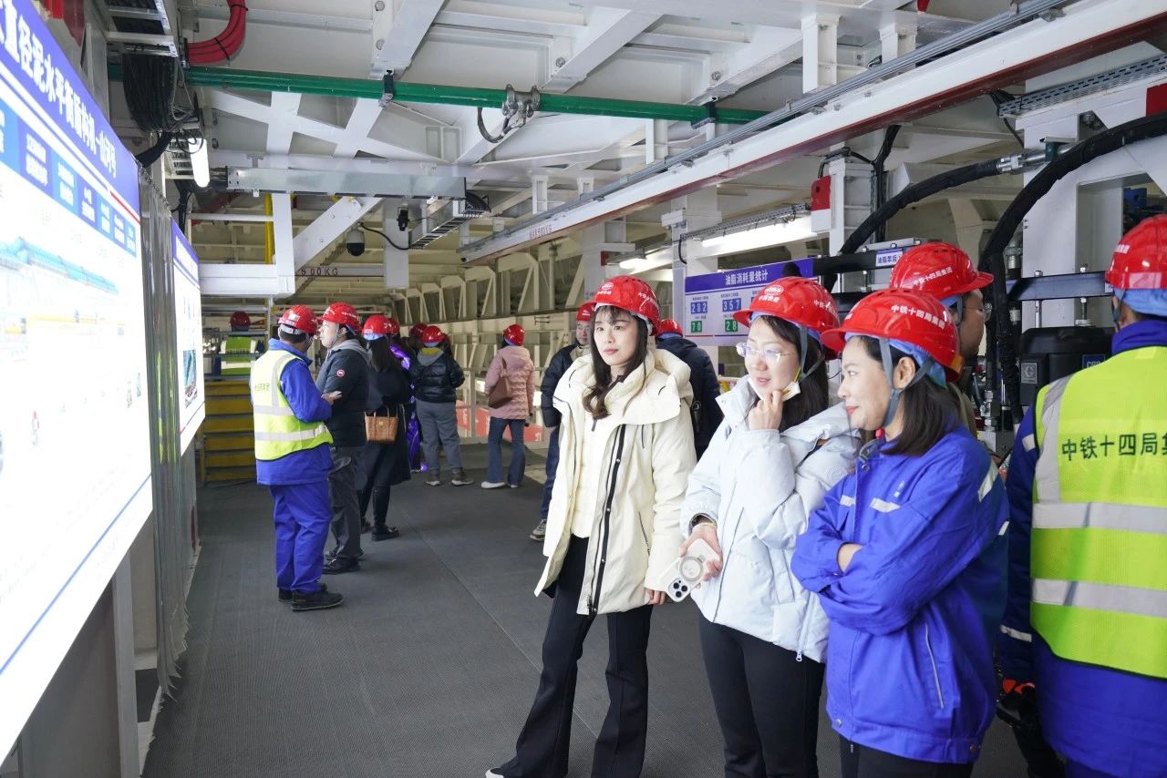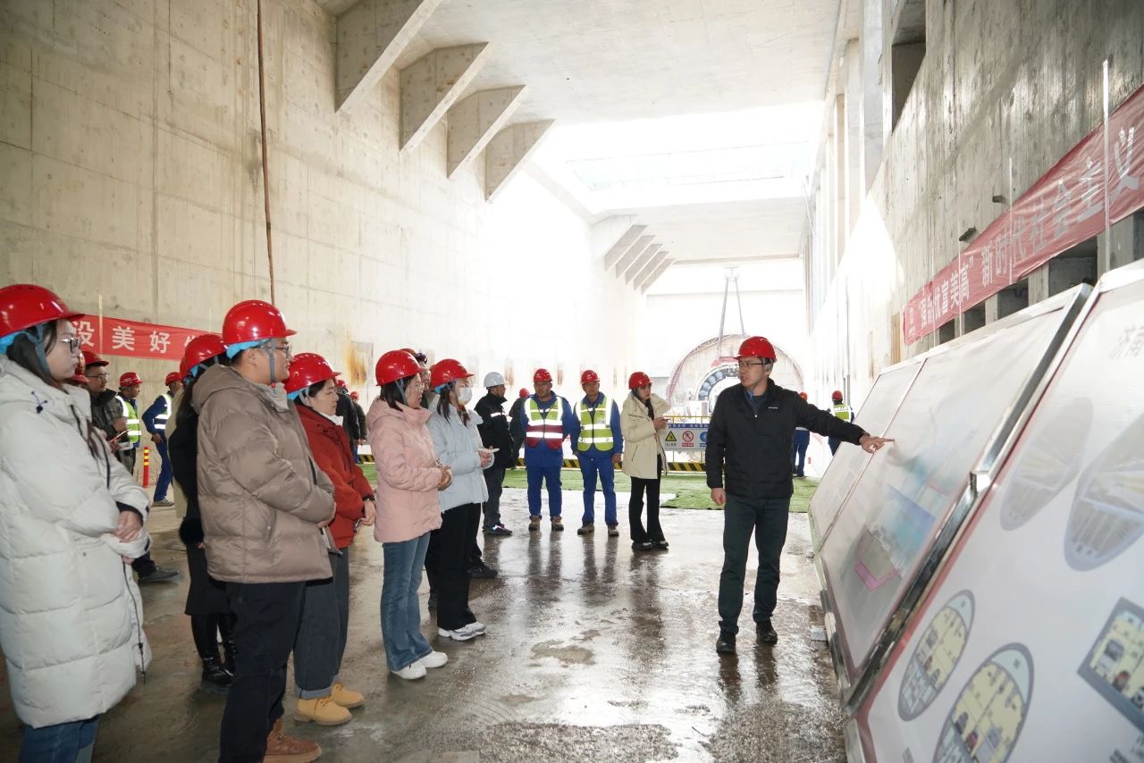 在濟(jì)南市黃崗路穿黃隧道,媒體記者參觀隧道展廳,前往盾構(gòu)施工現(xiàn)場詳細(xì)了解項(xiàng)目建設(shè)推進(jìn)情況及施工保障管理措施。