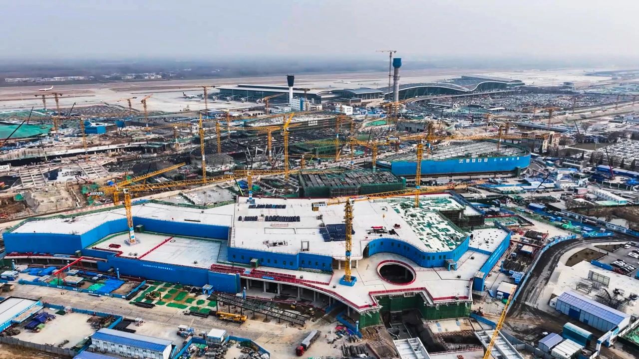 濟(jì)南機(jī)場二期改擴(kuò)建工程各項(xiàng)施工現(xiàn)場,塔吊林立、機(jī)器轟鳴,一派繁忙景象。目前,機(jī)場二期工程各項(xiàng)目施工負(fù)荷率已達(dá)91%,2月20日施工負(fù)荷率將達(dá)100%,屆時近30家施工單位、5000余名作業(yè)人員、1000余臺機(jī)械、車輛同時開展施工作業(yè),全力沖刺2025年首季“開門紅”。航站區(qū)T2航站樓主樓正在進(jìn)行混凝土結(jié)構(gòu)施工、基坑施工和地上結(jié)構(gòu)施工;B指廊樁基全部完成,C指廊正在開展鋼網(wǎng)架吊裝,D指廊正在主體結(jié)構(gòu)施工,E指廊完成鋼結(jié)構(gòu)屋面首吊;塔臺主體結(jié)構(gòu)封頂,混凝土結(jié)構(gòu)全部完成。綜合交通中心正在進(jìn)行主體結(jié)構(gòu)施工,停車樓主體結(jié)構(gòu)完成封頂。西飛行區(qū)地基強(qiáng)夯全面完成,水穩(wěn)基層有序推進(jìn)。