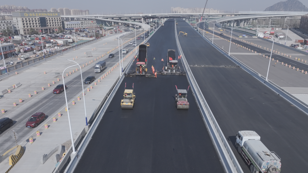 近日,由濟南城市建設集團負責建設的濟南黃河大橋零點立交段迎來最新工程進展,項目全面啟動濟廣高速主線橋面瀝青攤鋪施工,標志著項目建設進入最后沖刺階段,為順利完成年中完工目標提供堅實支撐。
