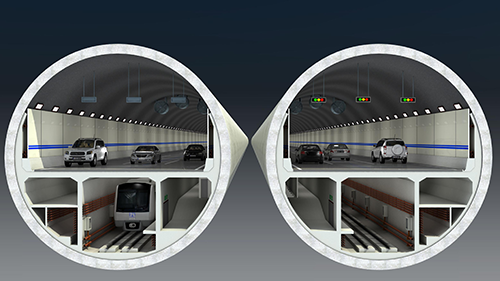 濟(jì)濼路穿黃隧道工程位于濟(jì)南市中部,工程全長5.1千米,隧道工程長3.68千米,是國內(nèi)第一條穿越黃河的大型交通隧道,具有工程規(guī)模大、技術(shù)難度高、系統(tǒng)接口多、施工工期緊等特點,是支撐濟(jì)南市“攜河發(fā)展”戰(zhàn)略的重要北跨通道之一,隧道采用城市道路與軌道交通M2線同管共建方案,為超大斷面盾構(gòu)法隧道。道路為雙向六車道城市主干路,設(shè)計速度為60km/h,項目估算總投資為517417萬元,建設(shè)工期約為45個月,目前項目已啟動建設(shè)。