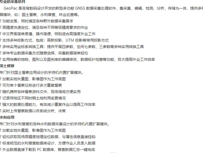 GeoRef V2系列是高性能的專業(yè)GIS數(shù)據(jù)采集器,采用自主知識產(chǎn)權(quán)的高精度差分增強(qiáng)算法,支持大數(shù)據(jù)量影像數(shù)據(jù)加載及百兆級矢量數(shù)據(jù)加載,具備事后差分增強(qiáng)功能,并整合主流高端系統(tǒng)硬件配置,為您的應(yīng)用提供更高的精度、速度和穩(wěn)定性,可滿足復(fù)雜環(huán)境、多樣化的使用需求。GeoRef V2系列提供全面的GNSS/GIS軟件應(yīng)用解決方案,兼容目前各種主流的GIS平臺特別是蒼穹GIS平臺軟件。同時,還可為您定制各種特殊要求的行業(yè)應(yīng)用功能,滿足您的個性化使用需求。